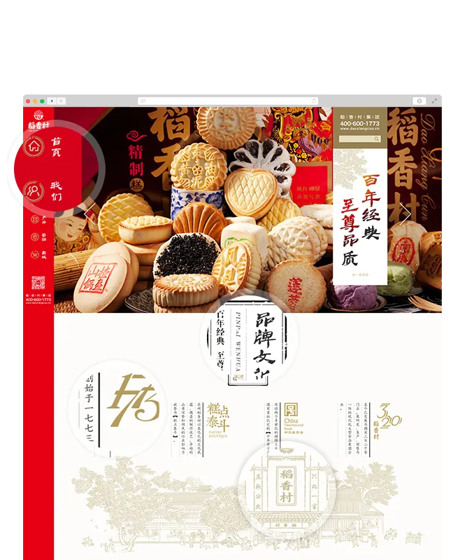 稻香村在開辟了線上營(yíng)銷后,逐漸認(rèn)識(shí)到線上品牌官網(wǎng)的重要。線上官網(wǎng)作為線上營(yíng)銷的重要品牌背書,原有網(wǎng)站太過老舊,而且品牌感很弱。