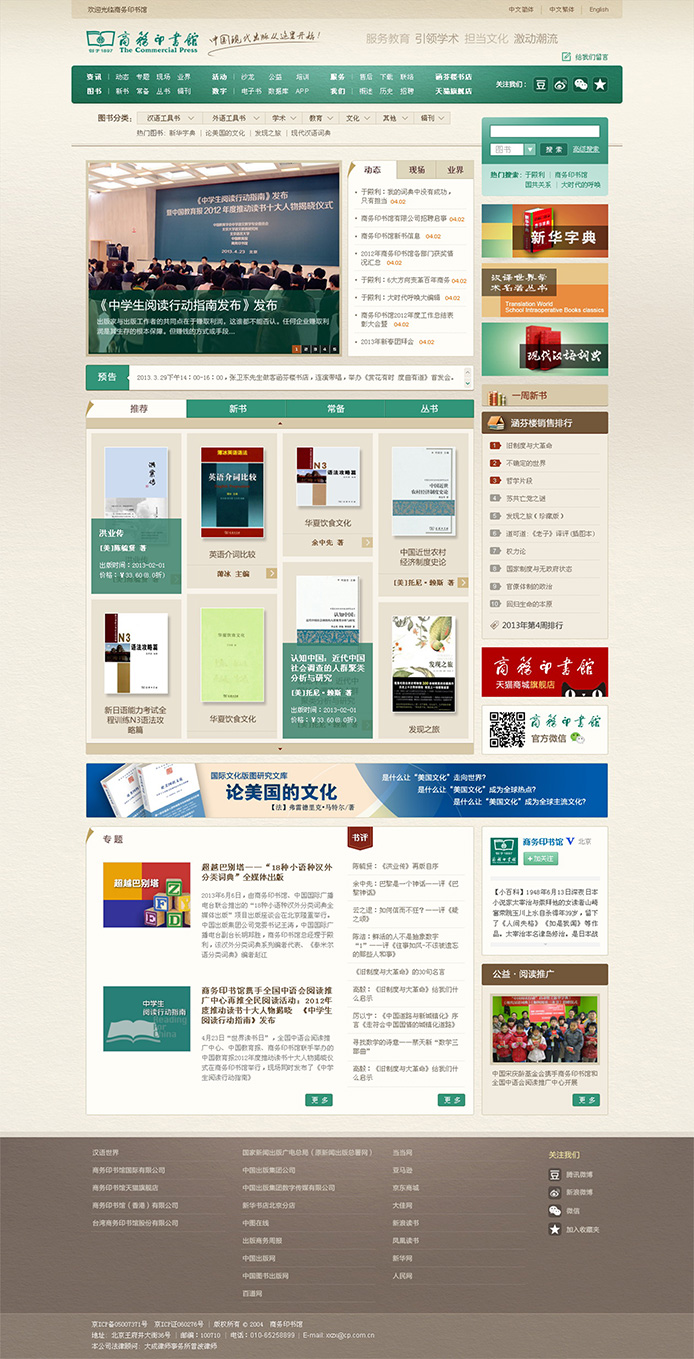 在遇到上云之前,商務(wù)印書(shū)館曾不止一次地推動(dòng)官網(wǎng)改版,但都以失敗告終。擁有百年歷史的商務(wù)印書(shū)館,官網(wǎng)是一個(gè)承載著深厚品牌文化積淀的傳播載體,也承擔(dān)著具備復(fù)雜內(nèi)容發(fā)布邏輯的責(zé)任。在設(shè)計(jì)之前,上云在商務(wù)印書(shū)館內(nèi)部展開(kāi)調(diào)研,并對(duì)各業(yè)務(wù)部門的需求和領(lǐng)導(dǎo)的期望做了全面的分析和深刻的總結(jié)。2013年,上云順利完成了商務(wù)印書(shū)館官網(wǎng)重新改版上線,并沿用至今。