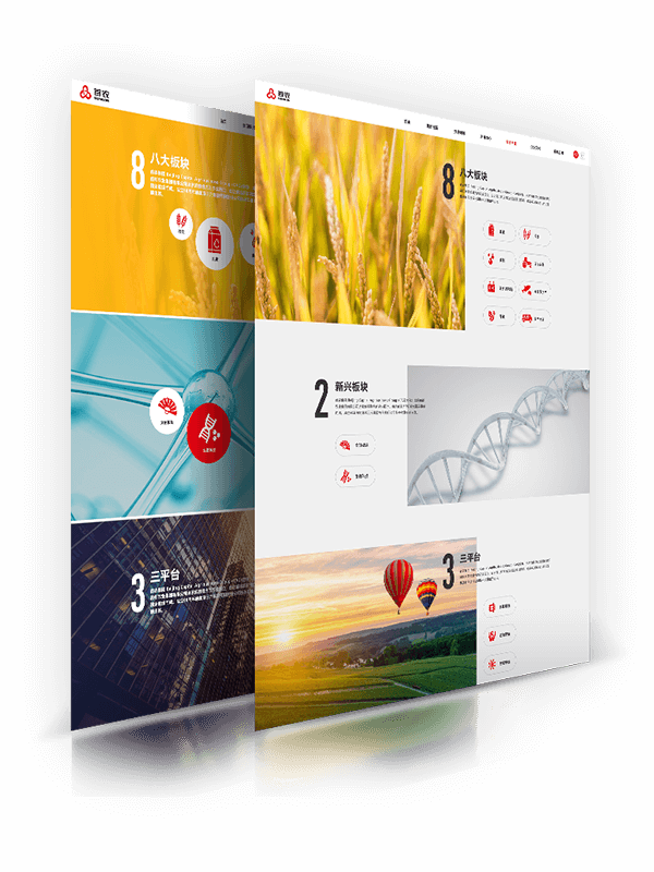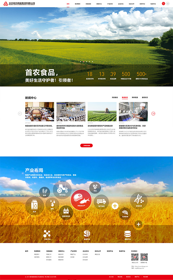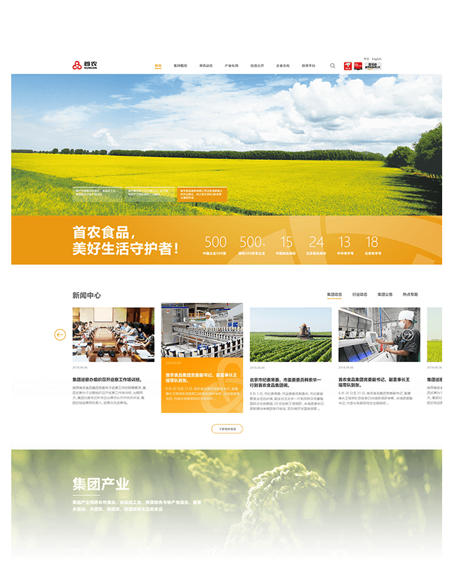 此首頁設(shè)計(jì)提案以展現(xiàn)首農(nóng)穩(wěn)重和專業(yè)可靠為主題,結(jié)合現(xiàn)在主流簡約、扁平化的設(shè)計(jì)手法,賦予頁面效果簡約高端的呈現(xiàn)效果。