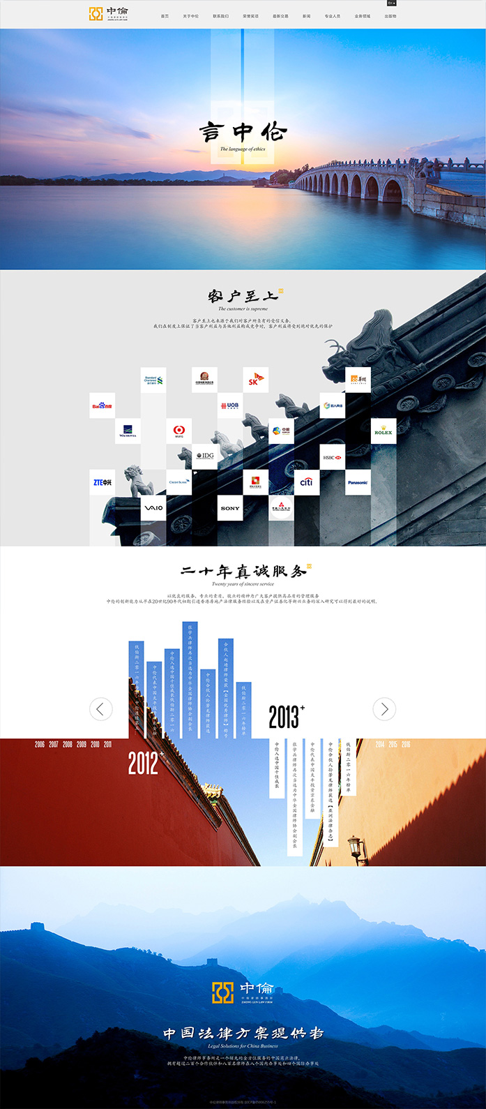 律所官網設計在于強調品牌理念。如何表達出中倫品牌深刻的思想積淀和薄發(fā)的進取精神,是我們與中倫眾多資深合伙人探討的主要問題。